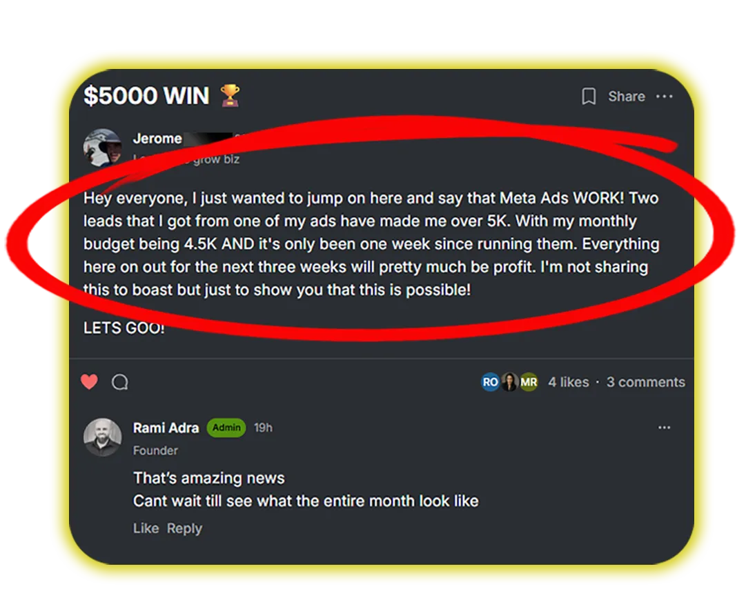 This is amazing for you because now we can actually help you scale. You might be even ready to level up to our next level in the community and support. This is for everybody running ads, not running ads. We help you if you're not running ads and we help you if you are running ads on how to optimize them and make them ten times better and get heaps of better results.